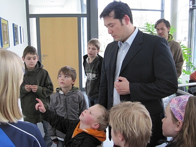 Jan erklärt sein Foto dem Bürgermeister